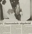 F.C. Dauwendaele De F.C. Dauwendaele wordt bij de KNVB ingeschreven op 1 augustus 1973 - de voetbalvereniging zat toen nog onder de vleugels van de wijkvereniging Dauwendaele. In 1975 maakt men zich los van de wijkvereniging en staat de F.C. op eigen benen. Aangezien een clubhuis node gemist werd, ontmantelen bestuur en andere vrijwillers in 1983 een school in de Stromenwijk die toch moet worden afgebroken en brengen de segmenten voorzichtig over naar het sportcomplex aan de Kruitmolenlaan. Zo ontstaat langzaam maar zeker een clubhuis dat op 18 mei 1985 wordt geopend door wethouder Henk Gillissen. |